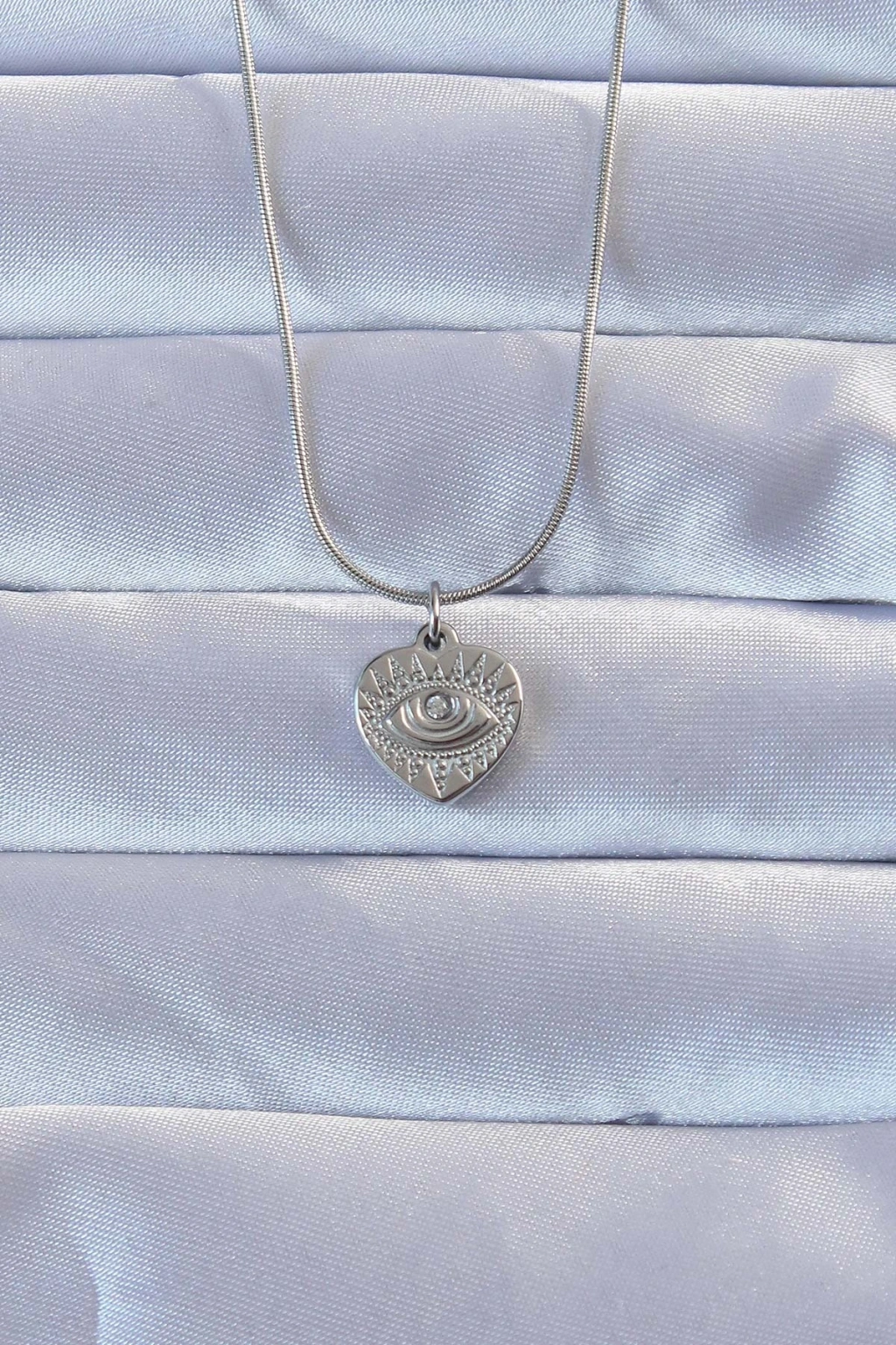 316l Gümüş Renk Zirkon Taşlı İşlemeli Göz Detay Kalp Kolye