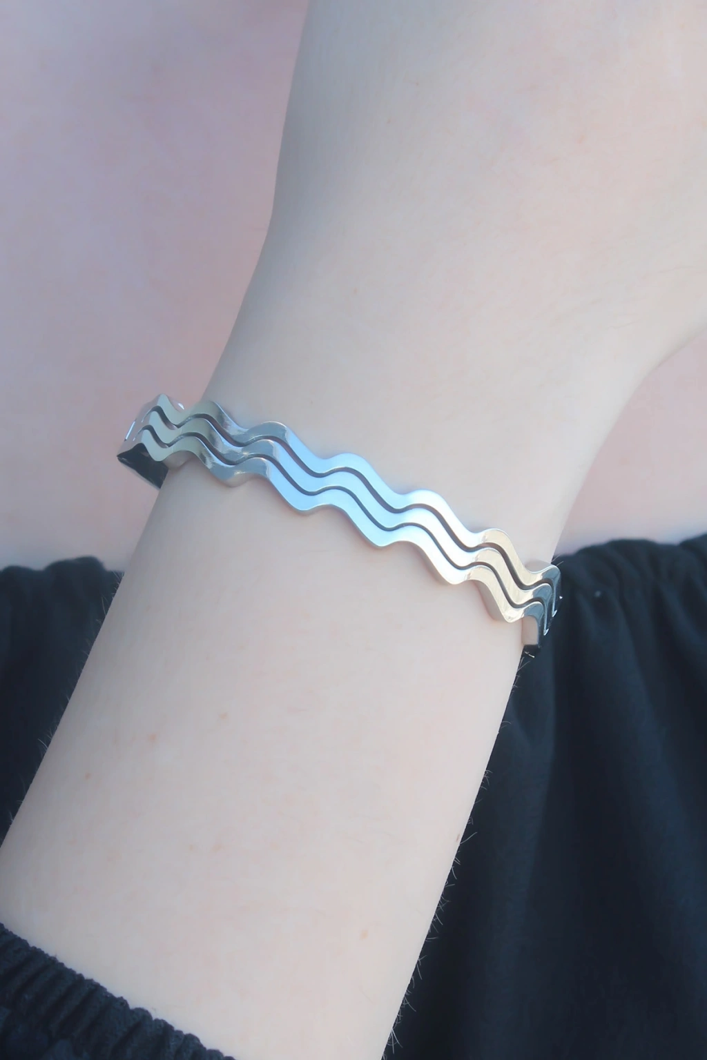 316L Kararmaz Çelik Gümüş Renk Dalga Model Kelepçe Kadın Bileklik