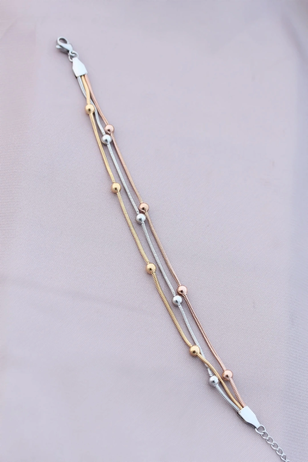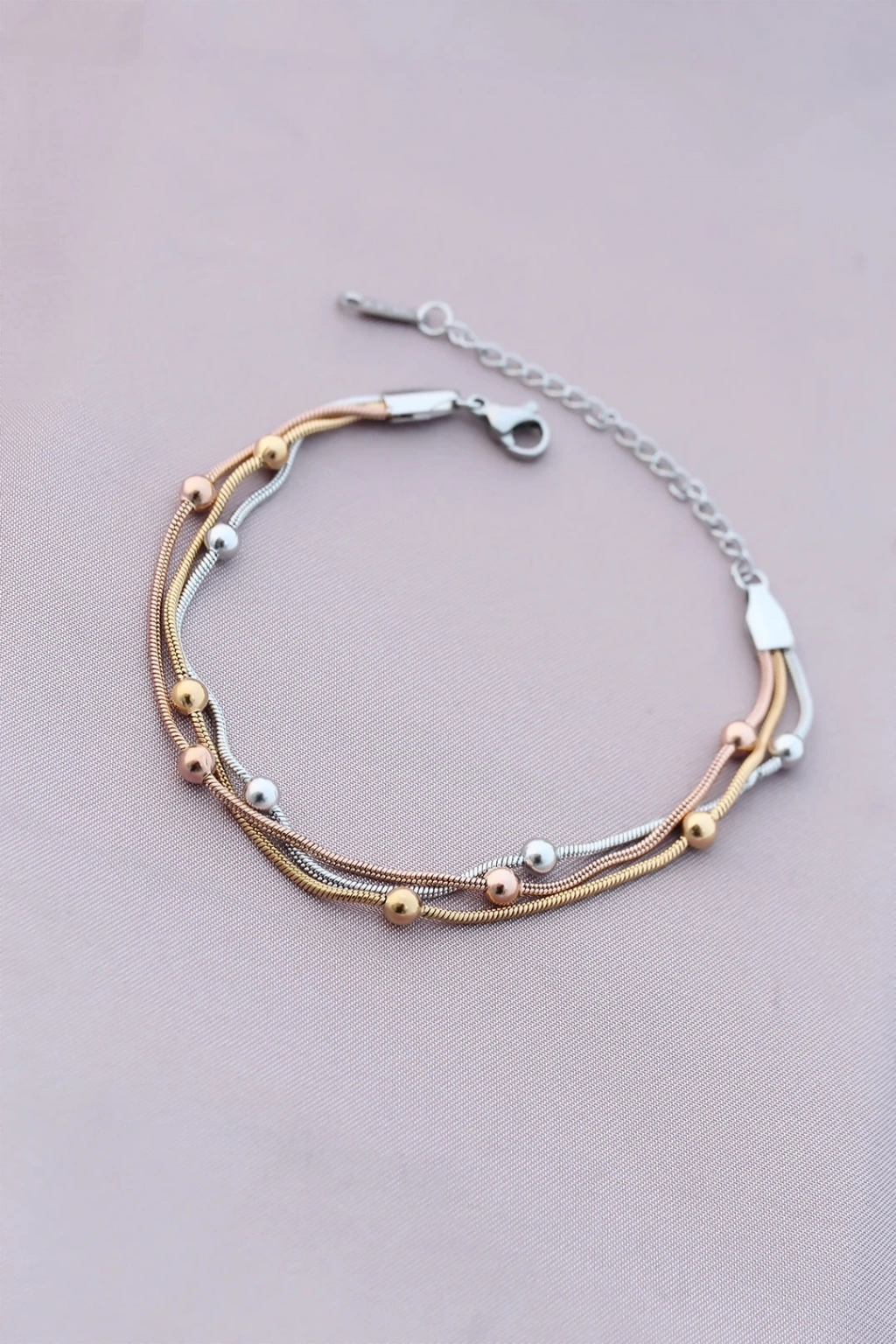 316L Kararmaz Çelik Gümüş Renk Top Zincirli Kadın Bileklik