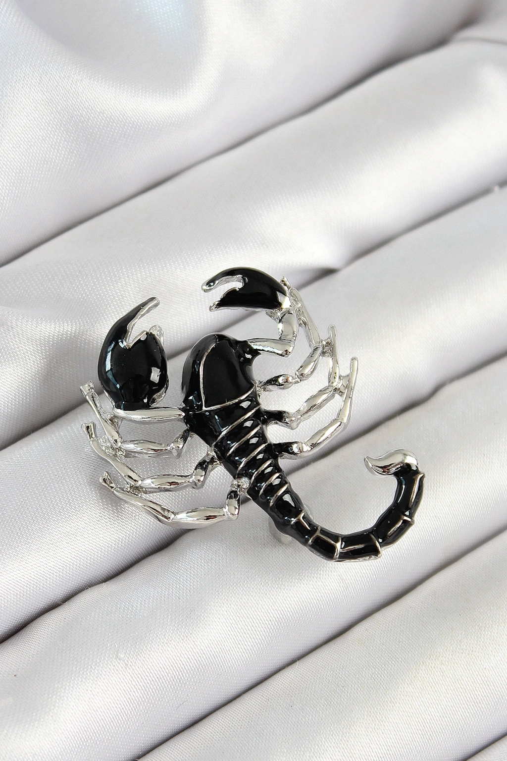 3D Siyah Akrep Figürlü Gümüş Renk Kadın Broş