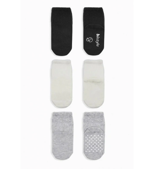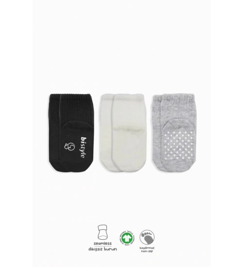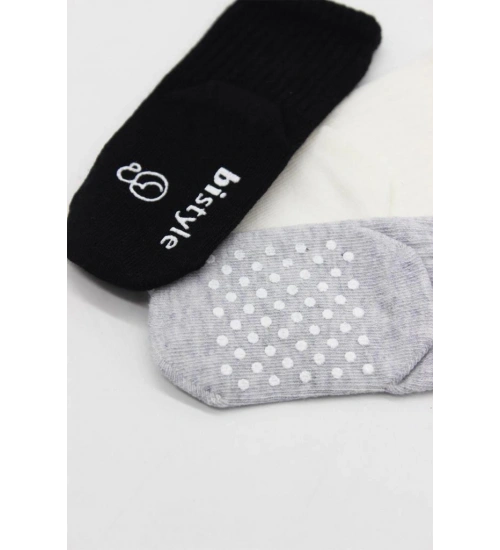 3'Lü Basic Kaymaz Penye Soket Çorap 10107 Siyah Ekru Gri