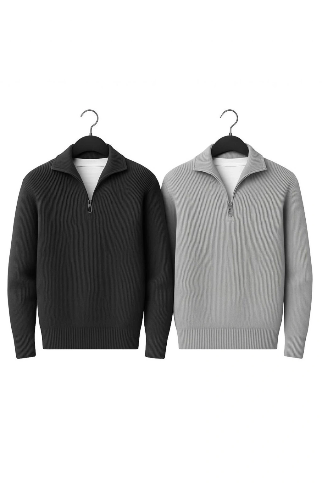 erkek premium kalite rahat kalıp pamuklu yarım fermuarlı triko tişört / t-shirt