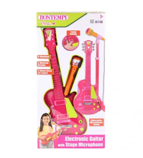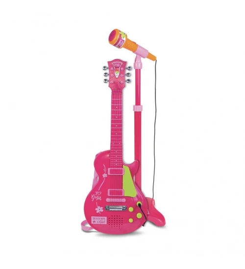 45872  Elektronik Gitar Ayaklı Mikrofon Müzik Seti Pembe -