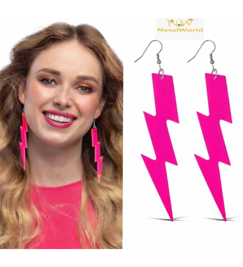 80’ler 90'lar Retro Neon Pembe Şimşek Küpe 10 cm