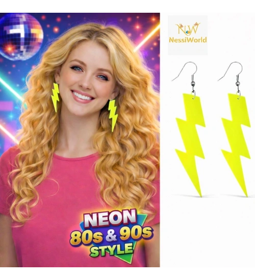 80’ler 90'lar Retro Neon Sarı Şimşek Küpe 10 cm