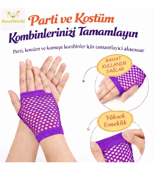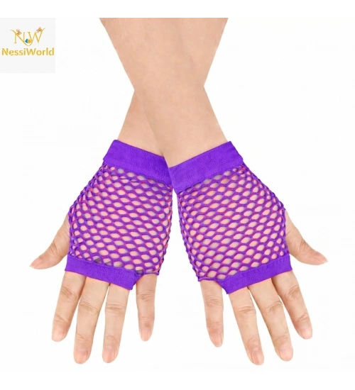80’ler 90’lar Retro Mor File Parmaksız Kısa Eldiven 11 cm
