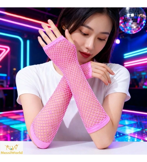 80’ler 90’lar Retro Neon Pembe File Parmaksız Eldiven 26 cm