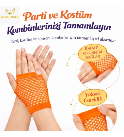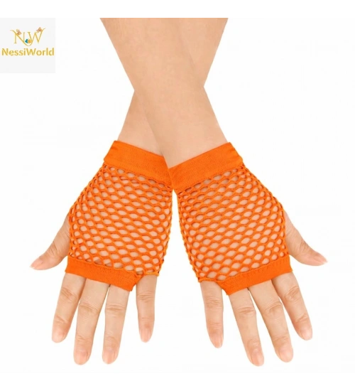 80’ler 90’lar Retro Neon Turuncu File Parmaksız Kısa Eldiven 11 cm