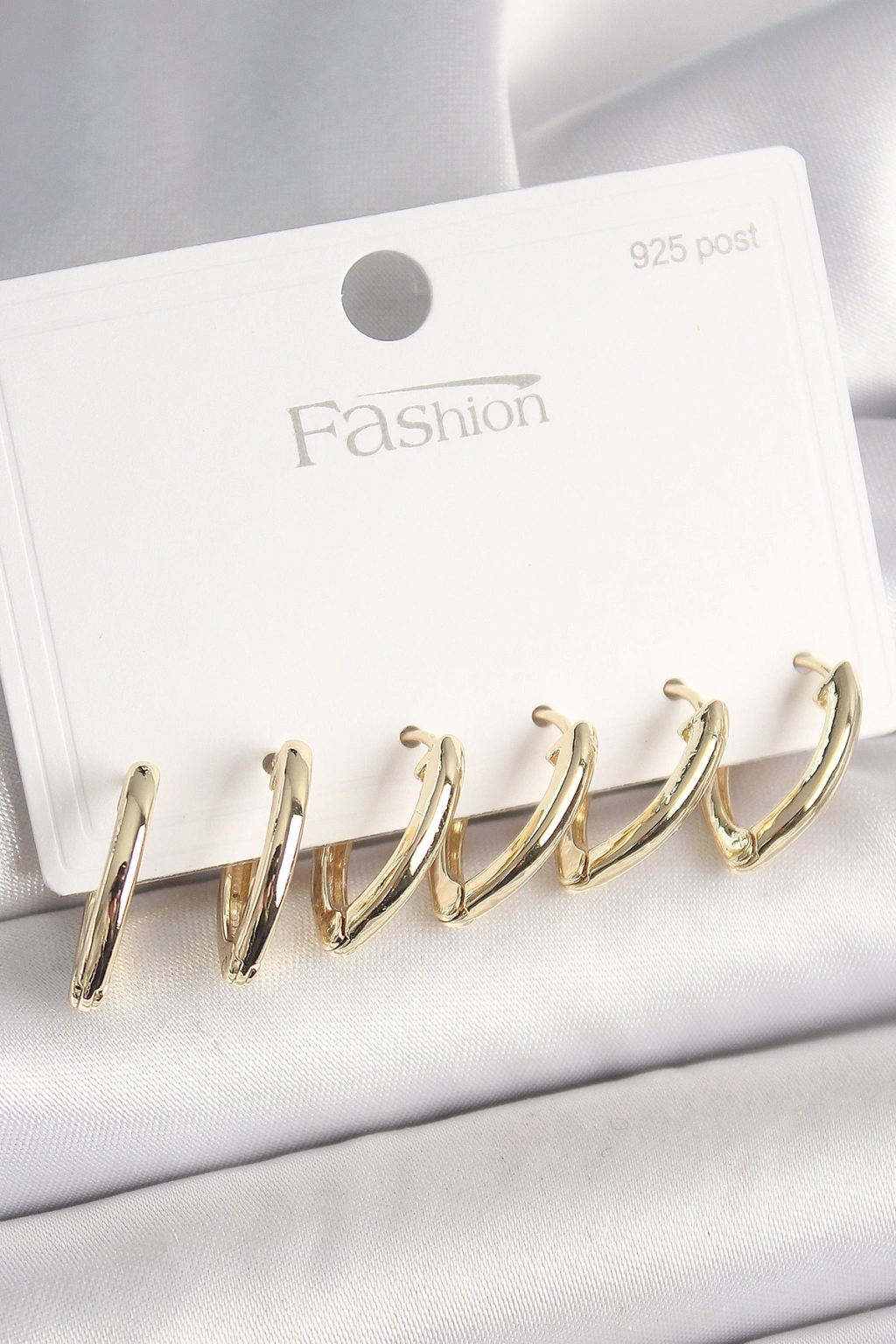 925 Ayar Gümüş Çivi Pirinç Gold Renk Üçgen Model Kadın Küpe Seti
