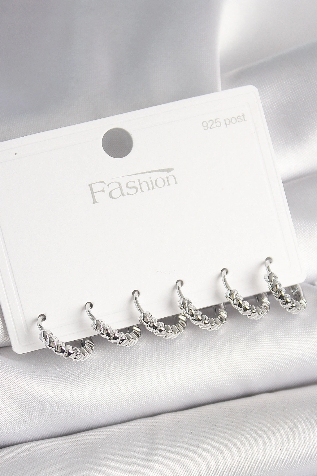 925 Ayar Gümüş Çivi Pirinç Gümüş Renk Kalp İşlemeli Halka Model Kadın Küpe Seti