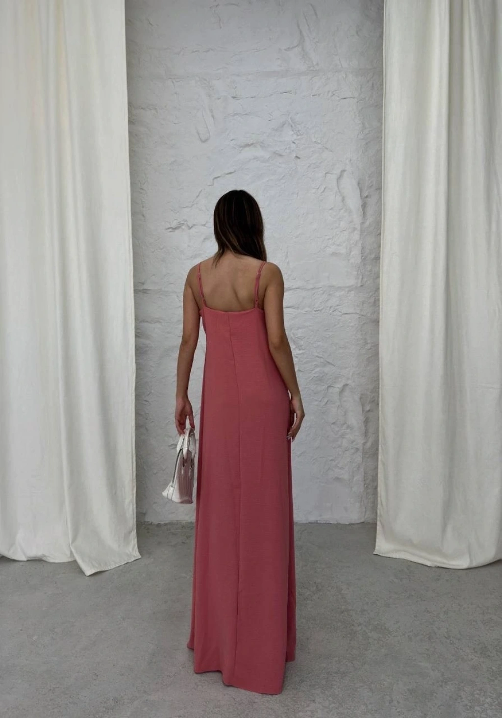 Askılı ch kumaş düğmeli elbise pudrabeyaz h265007