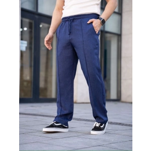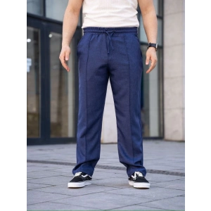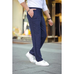 Erkek Cizgili Dokuma Krep Jogger Buggy Pantalon Rahat kalıp - Lacivert