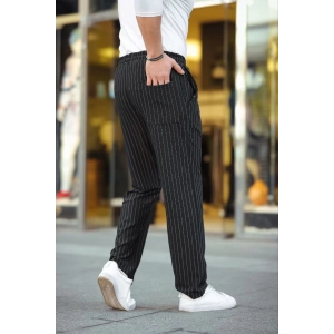 Erkek Cizgili Dokuma Krep Jogger Buggy Pantalon Rahat kalıp - Siyah