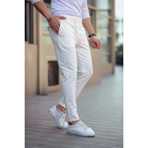 Erkek Cizgili Dokuma Krep Jogger Buggy Pantalon Rahat kalıp - Beyaz