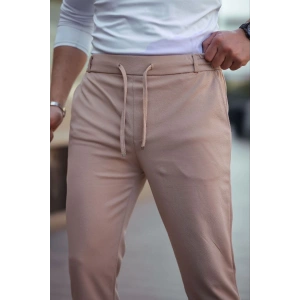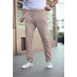 Erkek Diagonel Mikro dokulu Cepli Beli Lastilki Pantolon - Bej