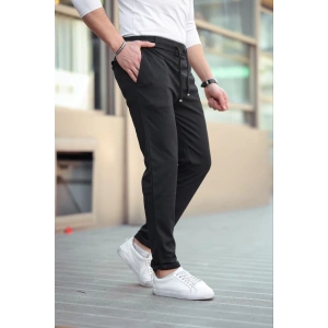 Erkek Diagonel Mikro dokulu Cepli Beli Lastilki Pantolon - Siyah