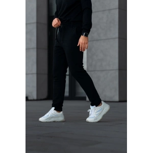 Erkek Üç iplik Kışlık Pamuklu Ovarsize Bağcıklı Düz Paça Cepli Eşofman Altı Spor Rahat Model - Siyah
