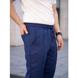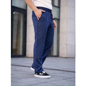 Erkek Keten Cepli Çıma Dikişli jogger Buggy Pantalon Rahat kalıp - Lacivert