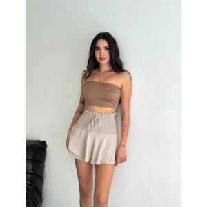 Su Yolu Çizgili kolay Kombinle Ne Bilir Mini Boy Etek - Bej