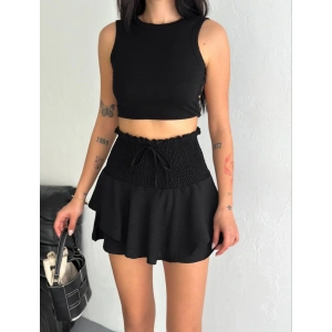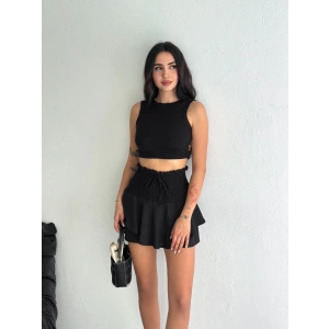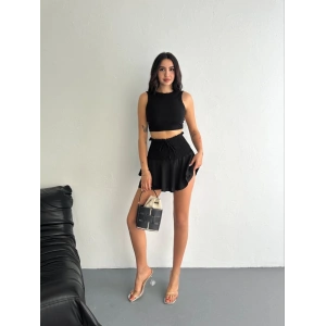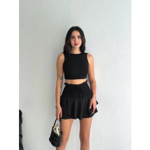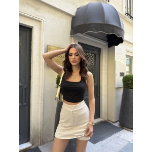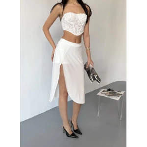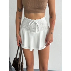 Çepli Şortlu Yırtmaçlı Etek - Beyaz