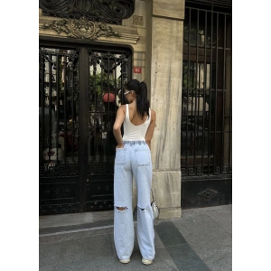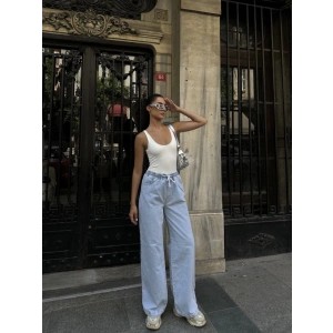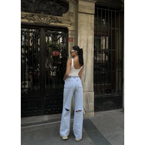 Kadın Arkadan Yırtmaçlı Jeans Kot Palazzo Pantolon - Mavi