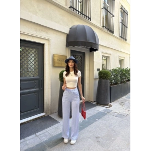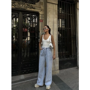 Su Yolu Çizgili kolay Kombinle Ne Bilir Cepli Pantolon - Açık Mavi