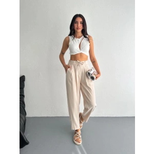 Osy Modal Yumuşak Dokulu Kadın Kumaş Boru Paça Salaş Eşofman - Bej