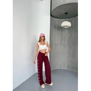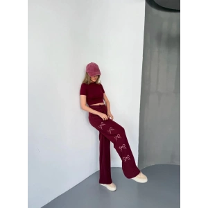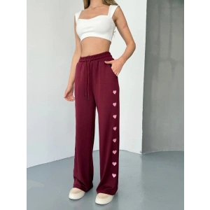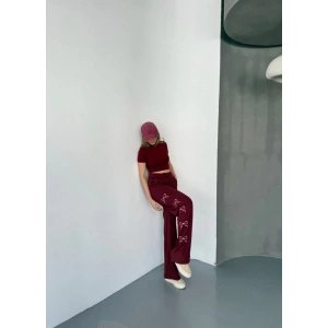 Osy Modal Yumuşak Dokulu Kumaş Nakış işlemeli Rahat Bol Paça Eşofman Pantalon - Bordo