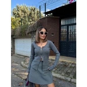 İKİLİ FERMUARLI HIRKALI ETEKLİ TAKIM - FÜME