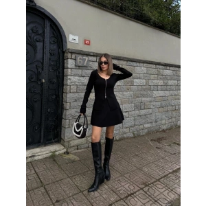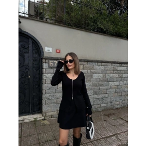 İKİLİ FERMUARLI HIRKALI ETEKLİ TAKIM - SİYAH