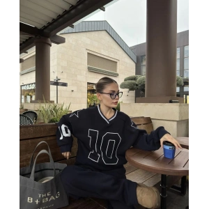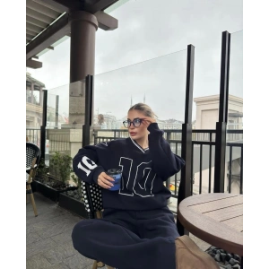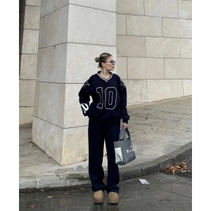 V YAKA ÜÇ İPLİK SWEAT TAKIM - SİYAH