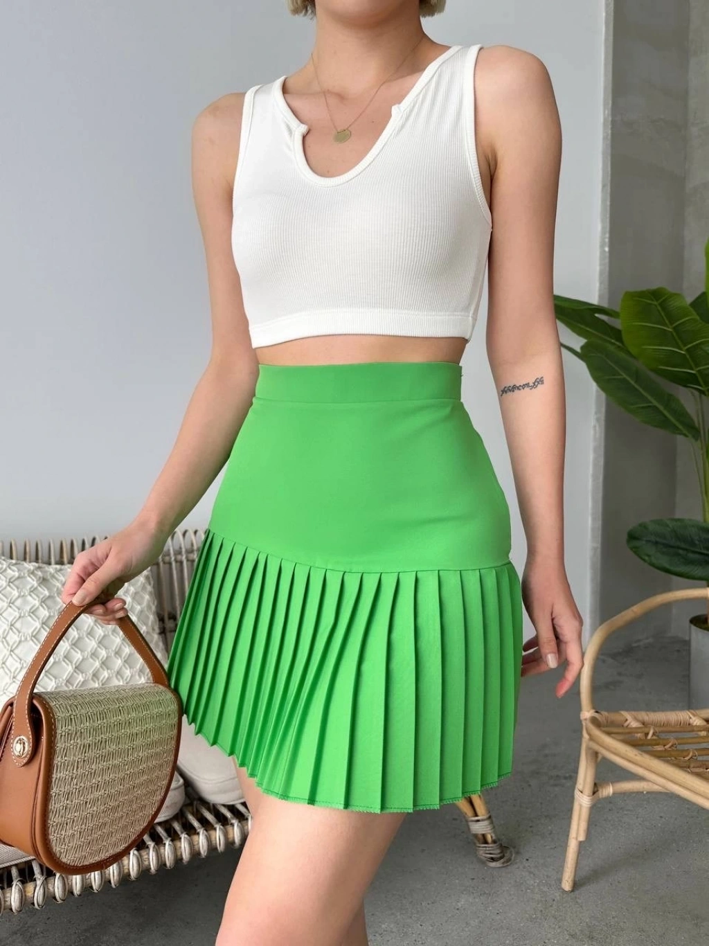Cep detaylı oval kapaklı deri etek yeşil h240048