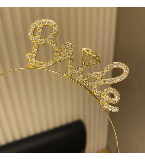 Altın Renkli Taşlı “Bride” Gelin Tacı – El Yazısı Yazı Tipiyle