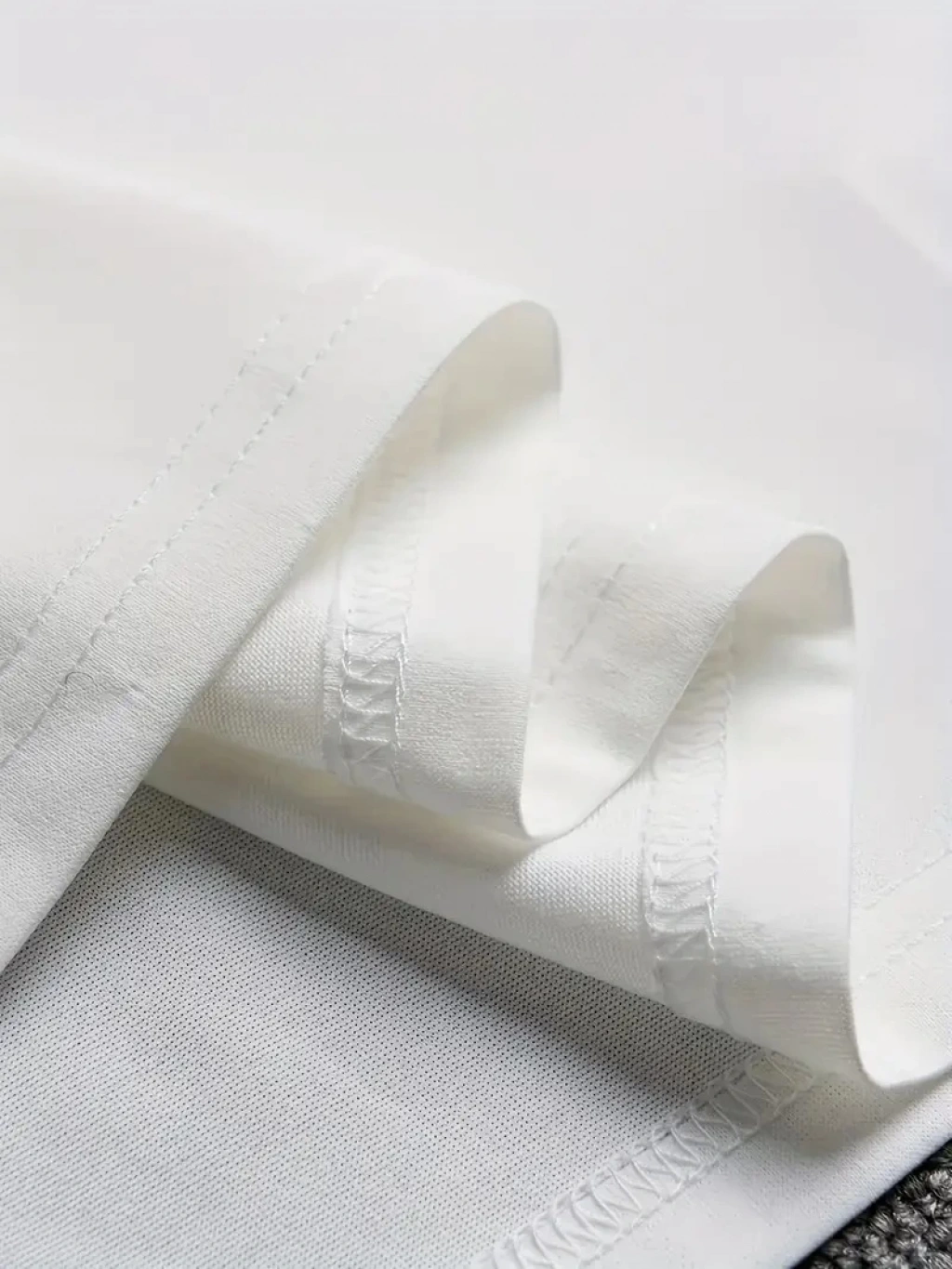 Eşsiz Baskı Tasarımlı Şık Büyük Beden Erkek Tişörtü - Rahat Polyester, Makinede Yıkanabilir, Yuvarlak Yaka - Her Mevsim İçin Mükemmel - Beyaz