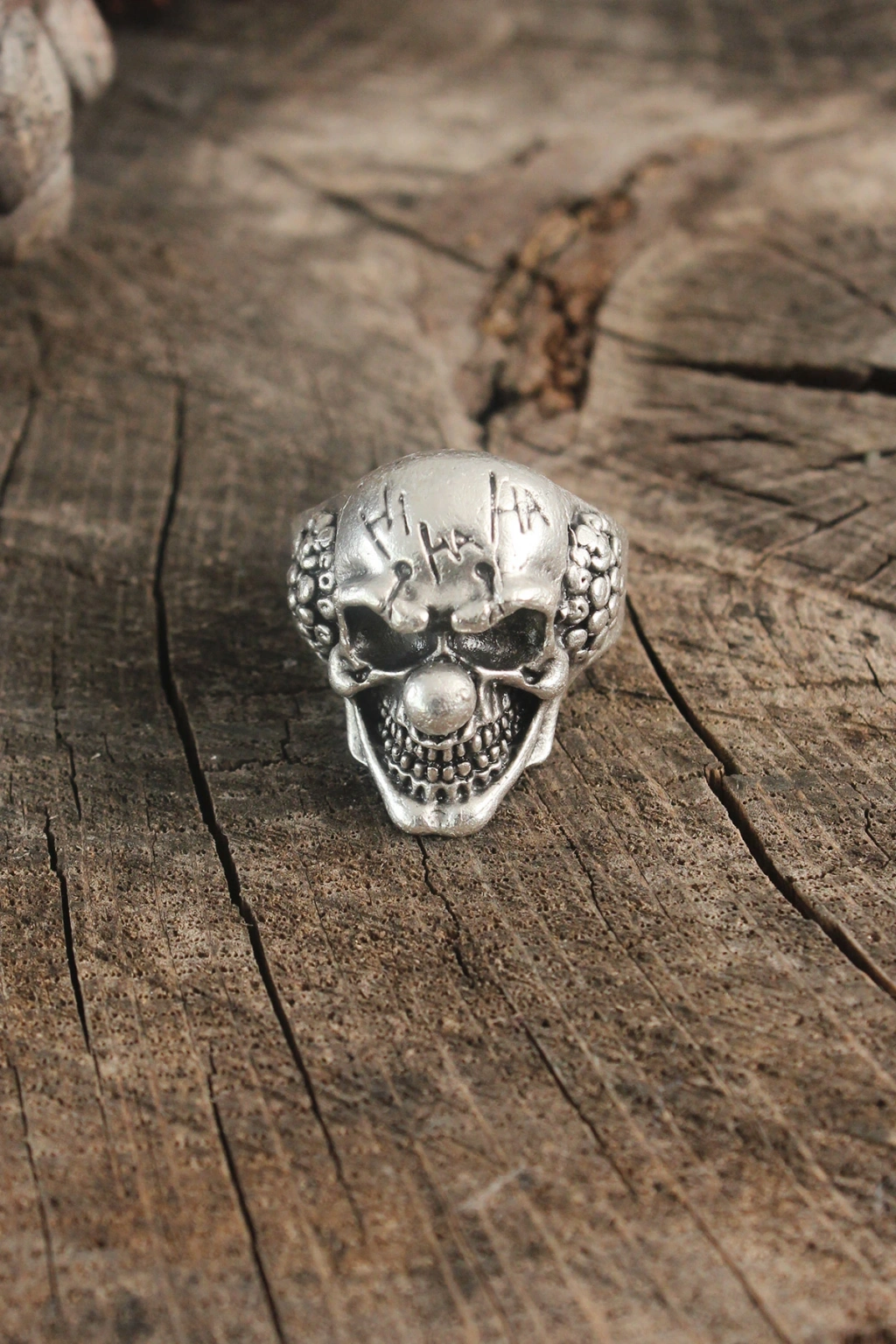 Antik Gümüş Renk Palyaço Model Ayarlanabilir Erkek Yüzük