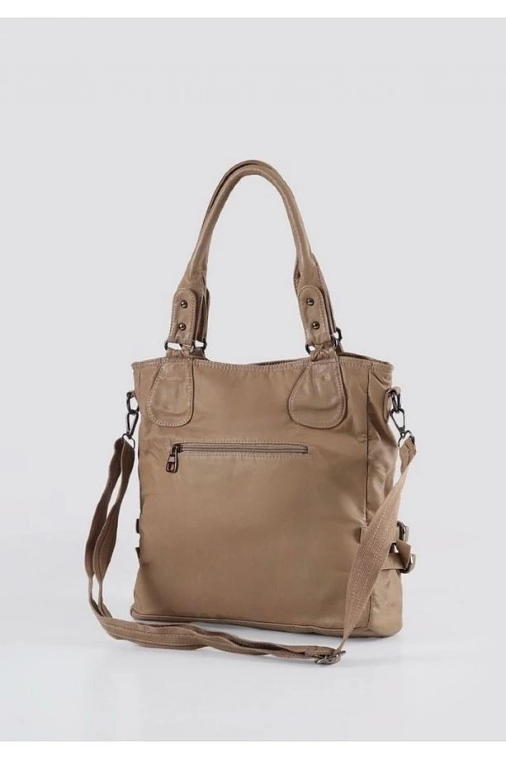 modern tasarımı ve çok yönlü kullanım imkanıyla dikkat çeken bir kadın omuz ve sırt çantasıdır. Yıkama deri malzemesi, zarif bir görünüm ve uzun ömürlü kullanım sunar. Hem omuz çantası hem de sırt çantası olarak kullanılabilen bu model, günlük yaşamınızda pratiklik ve şıklığı bir arada sunar.
