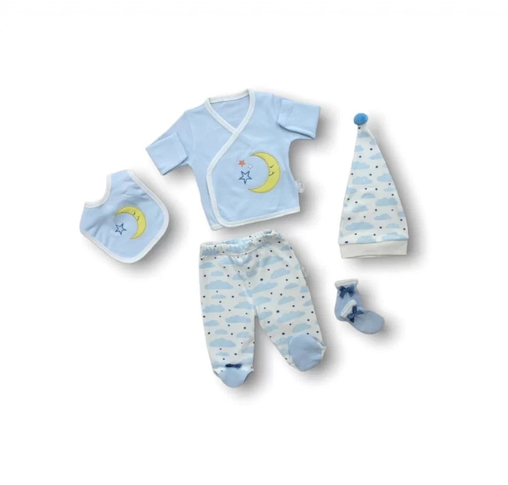 Ay Dedem Nakışlı 5li Zıbın Takımı Hastane Çıkışı Mavi