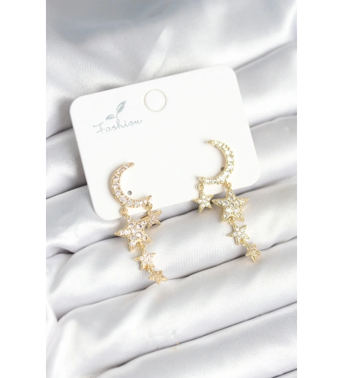 Ay ve Yıldız Model Gold Renk Pirinç Kadın Küpe