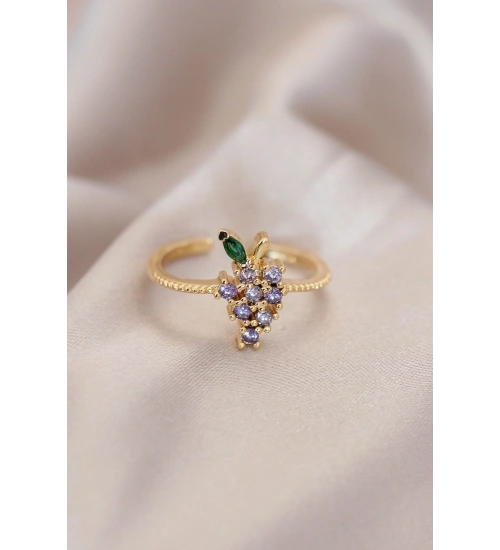 Ayarlamalı Altın Renk Metal Renkli Zirkon Taşlı Üzüm Yüzük