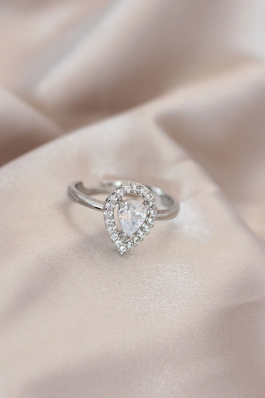 Ayarlamalı Silver Renk Metal Zirkon Ve Kristal Taşlı Damla Model Yüzük