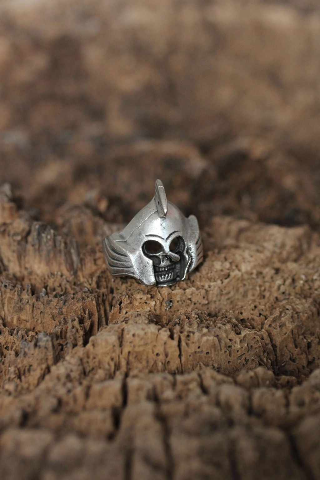 Ayarlanabilir Miğferli Kuru Kafa Tasarımlı Erkek Yüzük