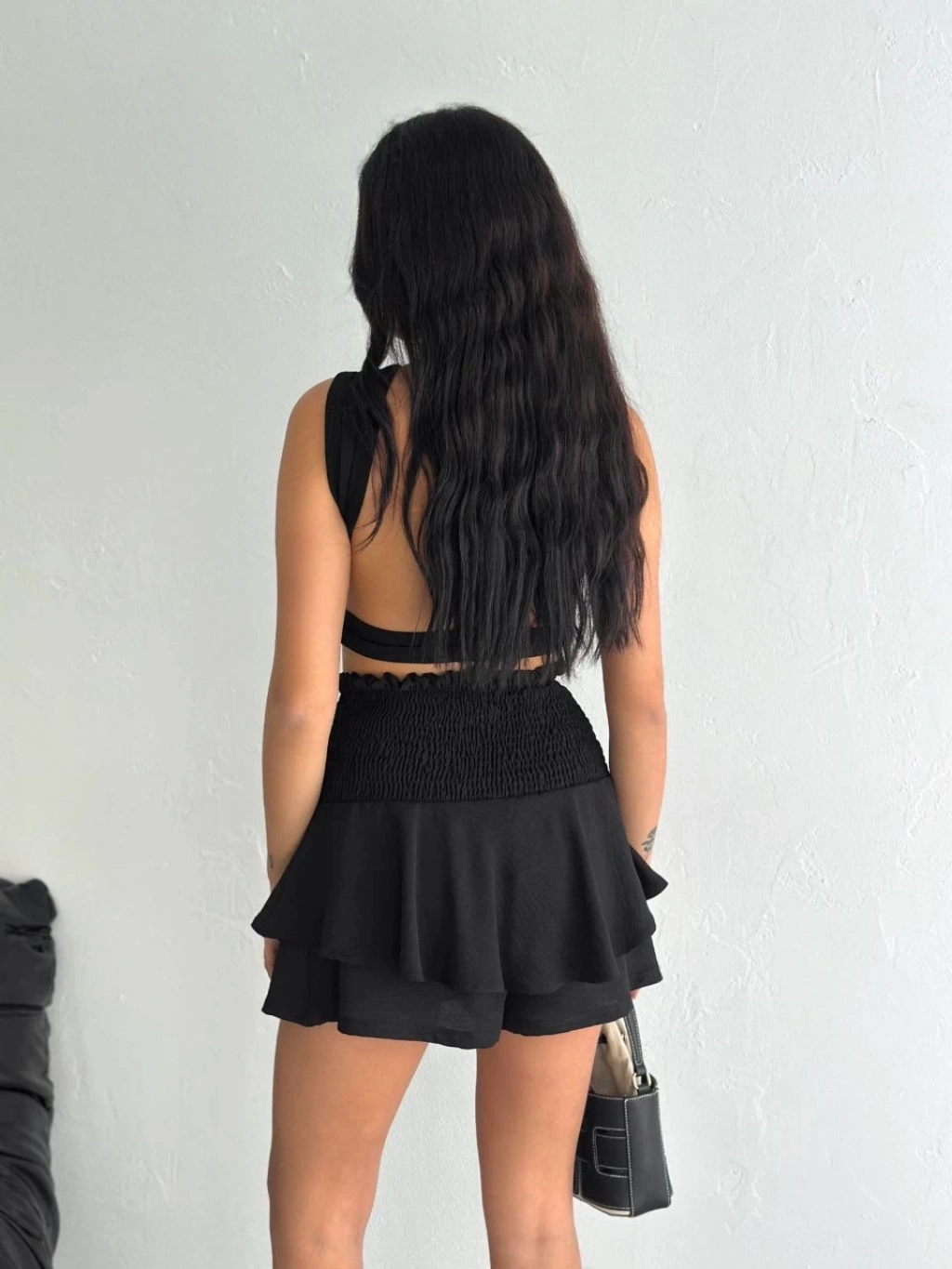 Çepli Şortlu Yırtmaçlı Etek - Beyaz