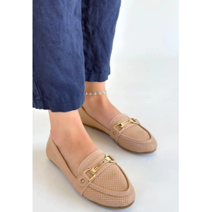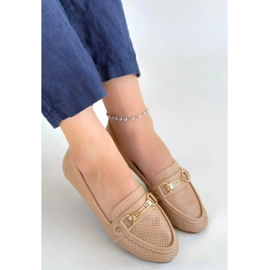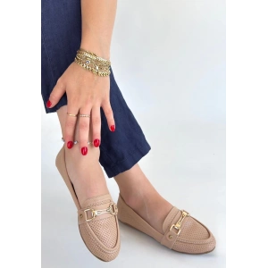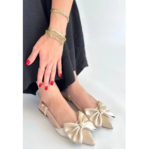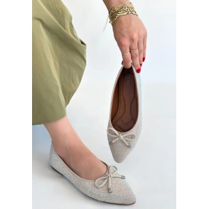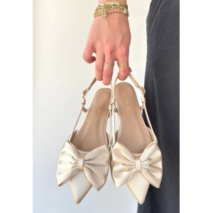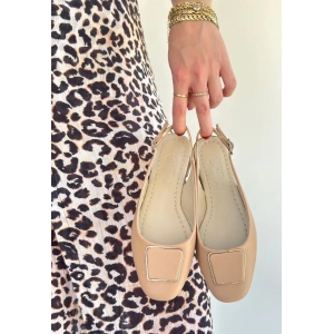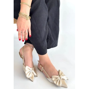 Sarra Bej Saten İşlemeli Babet Ayakkabı