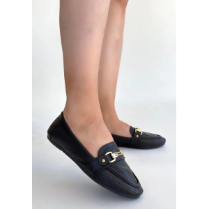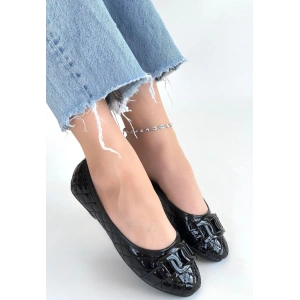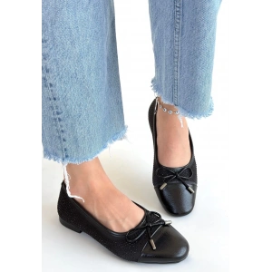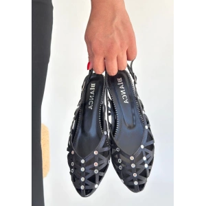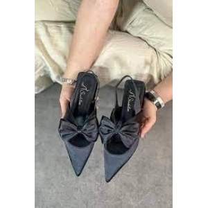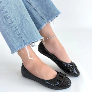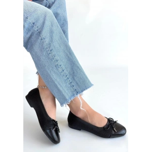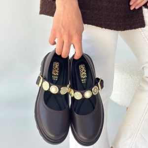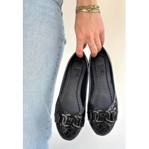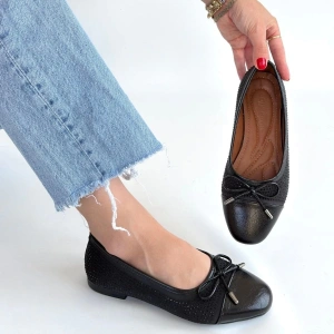 Sarra Siyah Saten İşlemeli Babet Ayakkabı