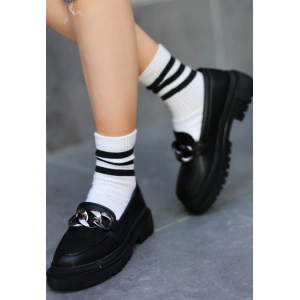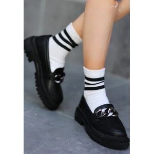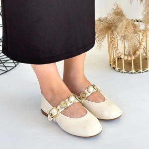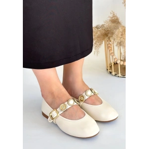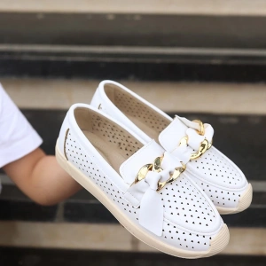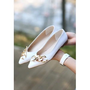 Popi Beyaz Cilt Zincirli Babet Ayakkabı