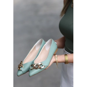Popi Mint Yeşili Cilt Zincirli Babet Ayakkabı