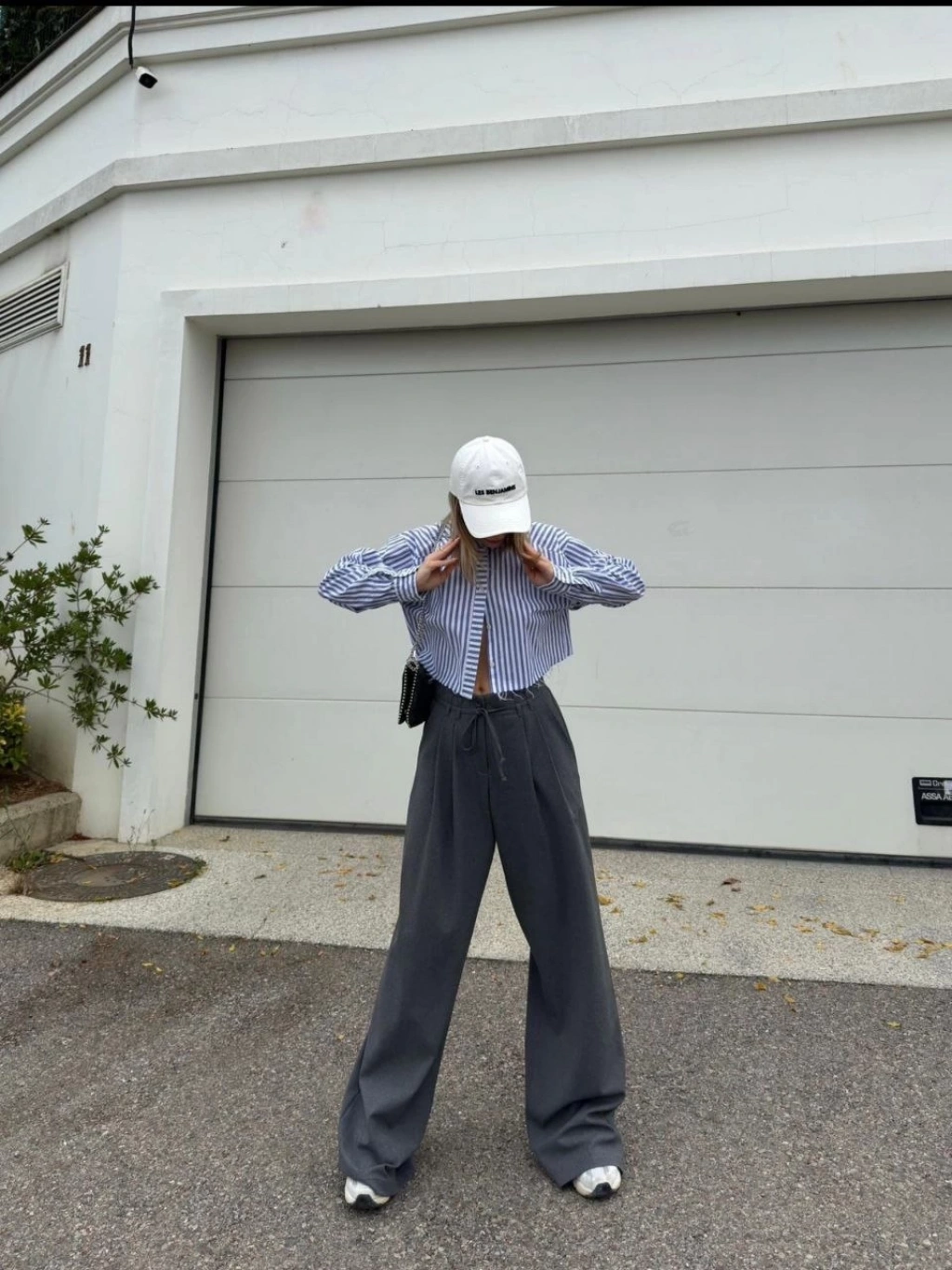 Su Yolu Çizgili kolay Kombinle Ne Bilir Cepli Pantolon - Açık Mavi