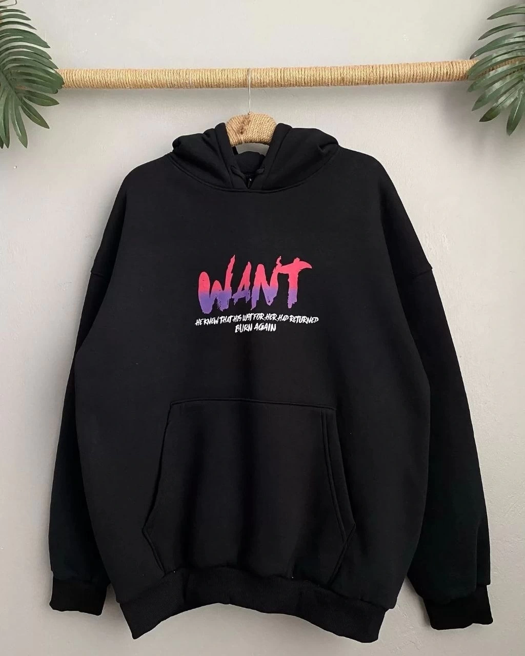 KADIN OVERSİZE ÜÇ İPLİK KAPÜŞONLU SWEATSHİRT – SİYAH “OTHER LİVES” ÖN VE ARKA BASKILI, ŞARDONLU KIŞLIK, RAHAT GÜNLÜK MODEL SİYAH