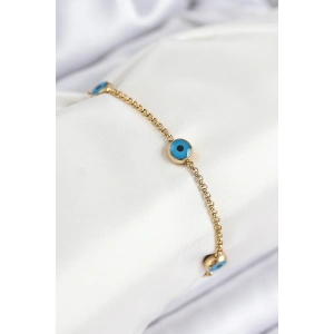 316L Çelik Nazar Boncuğu Model Gold Renk Kadın Bileklik