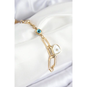 316L Çelik Nazar Boncuğu Ve Zirkon Taşlı Kalp Model Gold Renk Kadın Bileklik